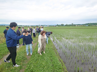 2件目に寄らして頂いたのは酒米生産農家であり上川地区酒米生産協議会会長である今野雅義様の圃場を見学しました。市内の酒米生産地は殆どが永山地区であり現在は14農家で77haを生産しています。参加された方は実際に生育